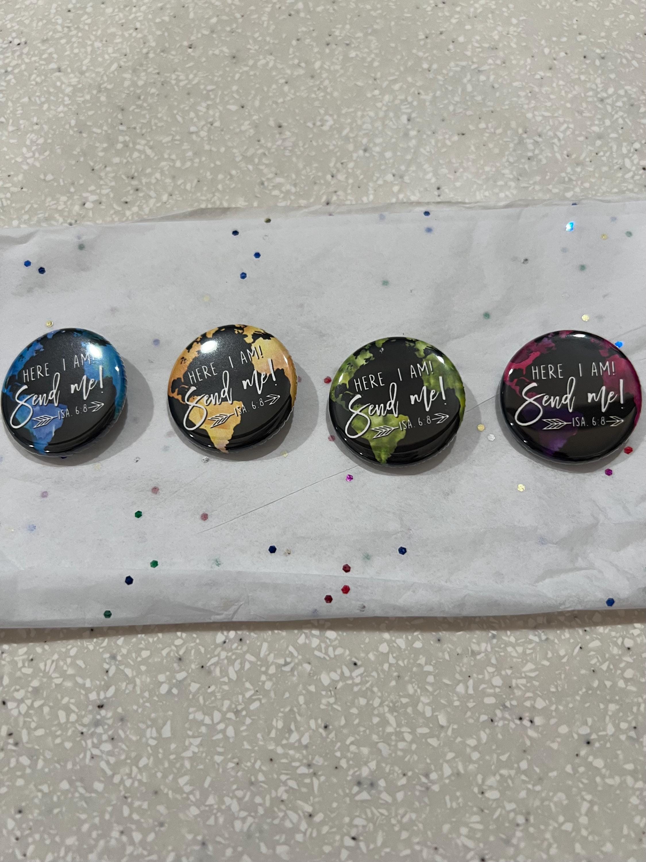 "Here I am! Send me! " - Isaiah 6:8 - Globe Buttons